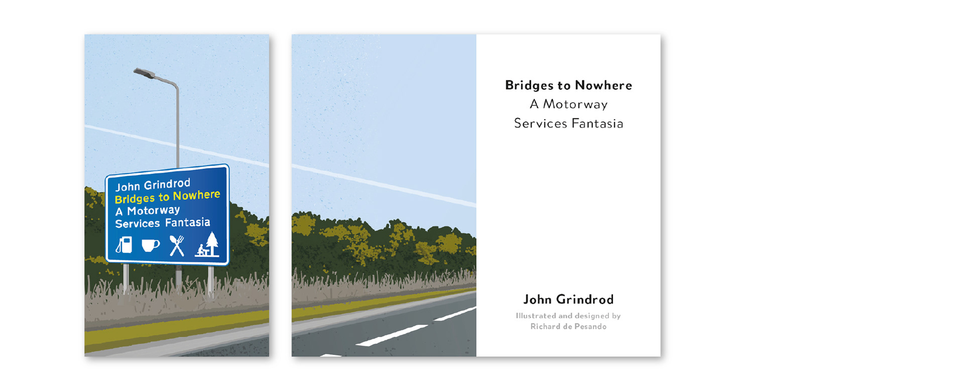 Design and illustration for a new pamphlet by John Grindrod, part memoir, part musing on the mystique and romance of motorway service stations.